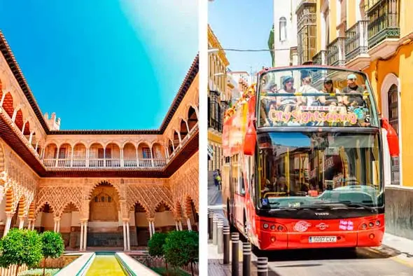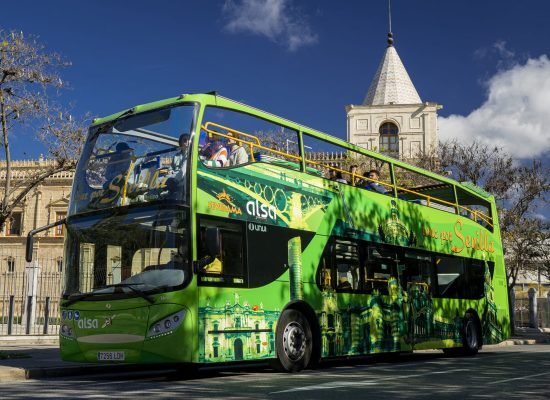 Descubre los autobuses de color rojo brillante para ver lo mejor de Sevilla, la capital artística, cultural y financiera del sur de España.